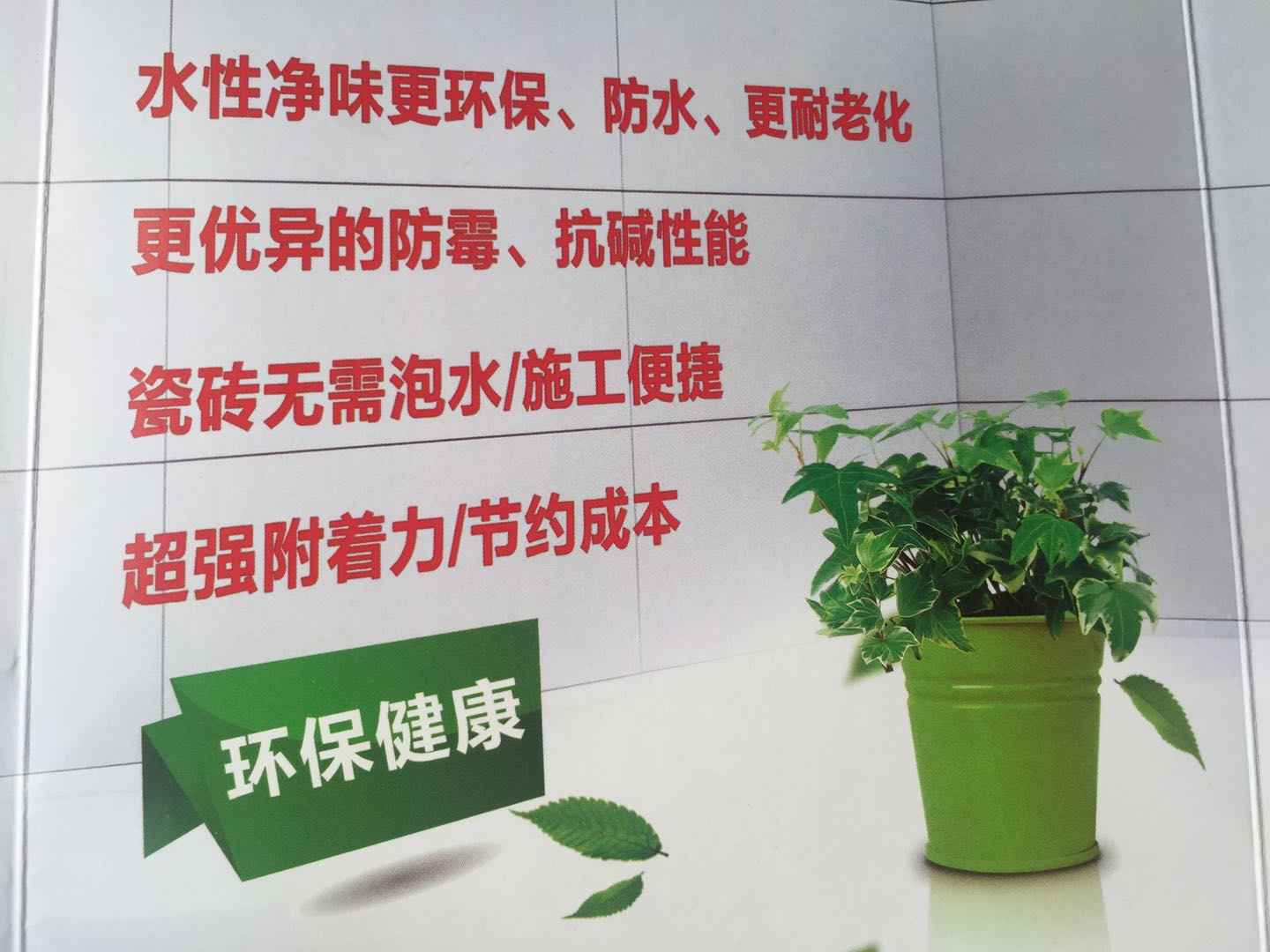 艺彩壹号娱乐-com - NG大舞台,有梦你就来净味水性瓷砖粘结剂是一种创新型绿色环保产品,是目前市场上性价比高、功能最强的产品,能确保30年不脱落、不空鼓。
