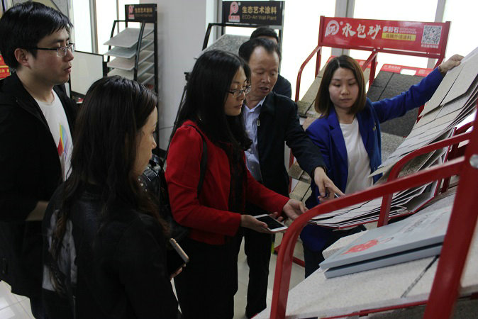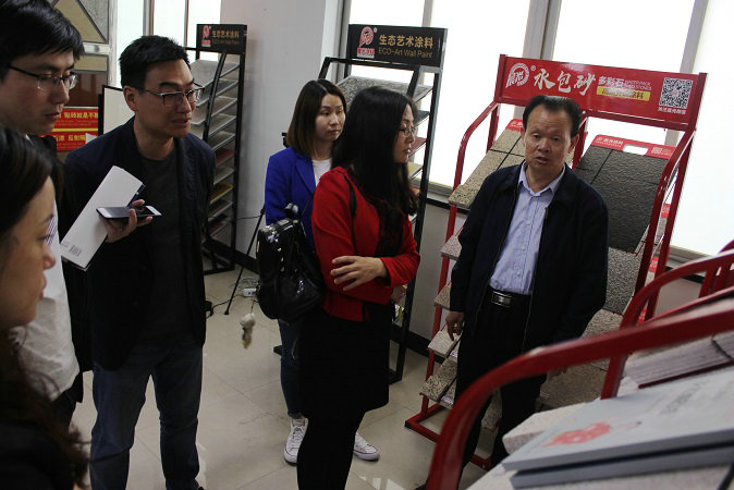 在展示厅,考察团对于水包砂多彩石、智能变色涂料、瓷砖粘结剂、耐擦写涂鸦漆、绝热保温涂料、超薄防水涂料等都进行了深入了解,沟通相关产品的细节,对于壹号娱乐-com - NG大舞台,有梦你就来发展、革新、进步的实力进行了全面了解,也为后续携手精品项目合作打下互信基础。