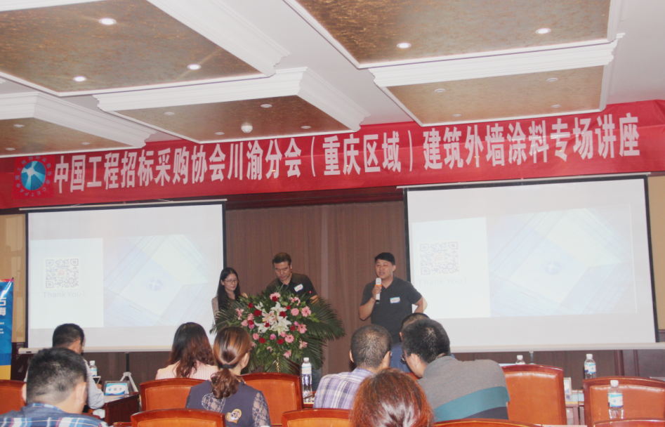 随着2016年已过大半,在涂料各个企业仍在持续努力,争取年底完美收官的大形势下,为了更好互动学习,业内各种峰会及专业交流会颇受欢迎,壹号娱乐-com - NG大舞台,有梦你就来近日出席由中国工程招标采购协会川渝分会举办的建筑外墙涂料专场讲座,在现场通过互动交流,与来自重庆区域的各知名房企、装饰工程企业高层进行了深入沟通。
