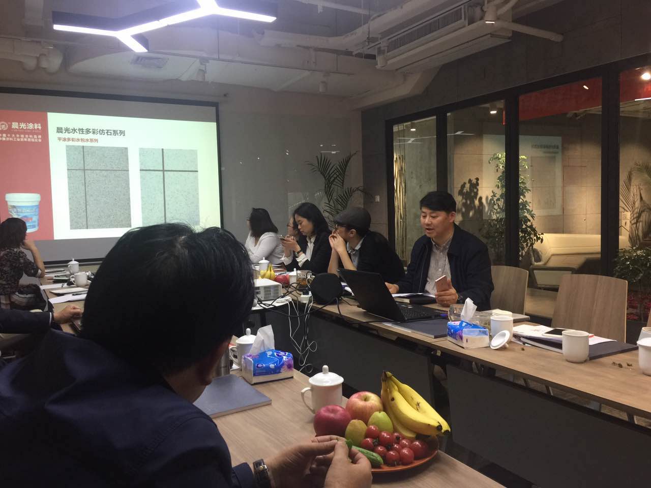 本次西安站走访活动,依然由中国装饰协会涂料与防水材料分会罗胜秘书长带队,携少数几家国内知名原料供应商品牌负责人走进大洋立恒装饰,共谋互动发展之未来,罗胜秘书长也在现场发言,中装协一直致力于为装饰工程企业提供及时的新技术,愿意做连接装饰企业与建材企业的有力纽带。实现有利于双方共同进步的互动。